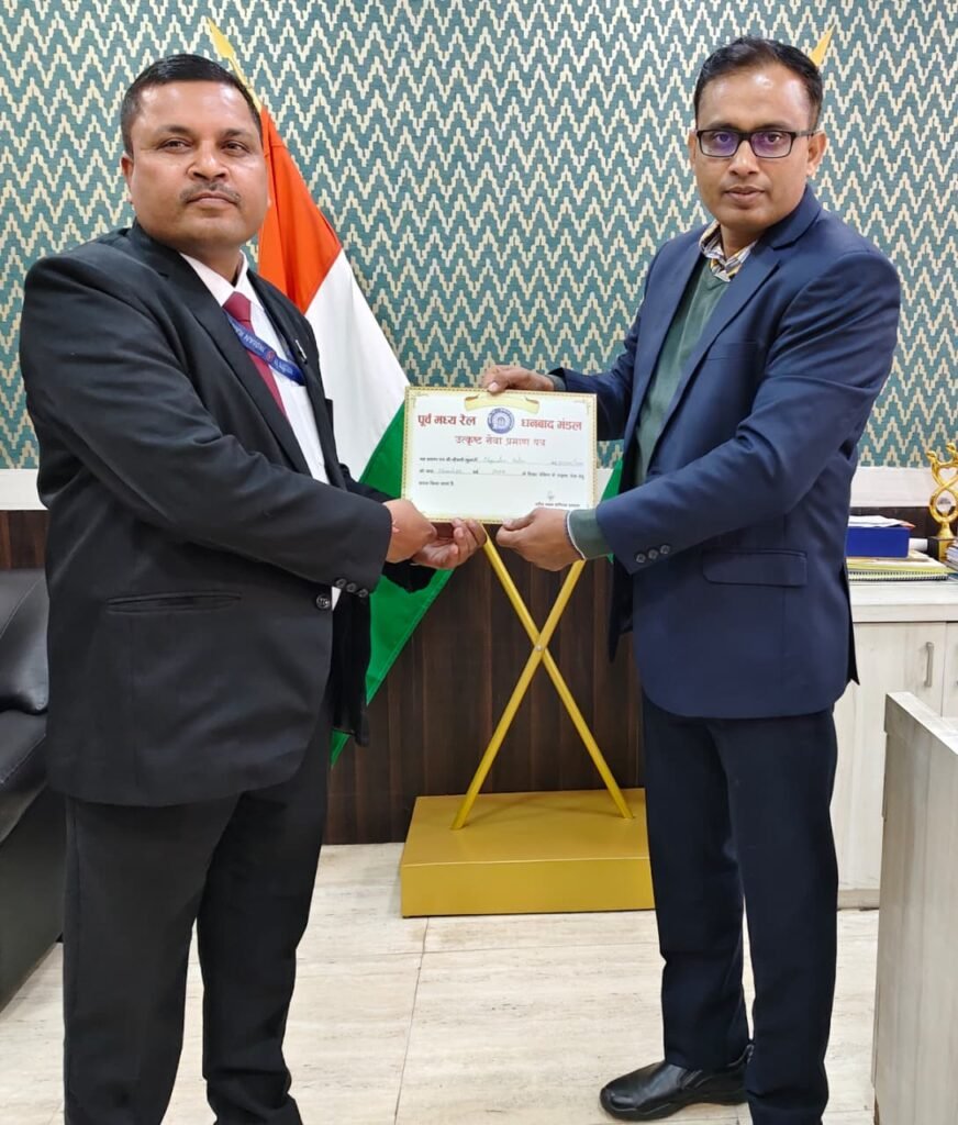 इस अवसर पर श्री इकबाल ने कहा कि टिकट चेकिंग कर्मी रेलवे की फ्रंटलाइन टीम का अहम हिस्सा हैं और उनके सतत प्रयासों से न केवल राजस्व में वृद्धि हो रही है, बल्कि रेलवे में अनुशासन भी मजबूत हो रहा है। उन्होंने सभी कर्मियों को इसी तरह समर्पण और ईमानदारी से कार्य करने के लिए प्रेरित किया।कार्यक्रम में सहायक मंडल वाणिज्य प्रबंधक (कोचिंग), धनबाद एवं मुख्य वाणिज्य निरीक्षक (टिकट चेकिंग) भी उपस्थित रहे। रेलवे प्रशासन ने भविष्य में भी बेहतर कार्य करने वाले कर्मियों को प्रोत्साहित करने का भरोसा दिलाया।