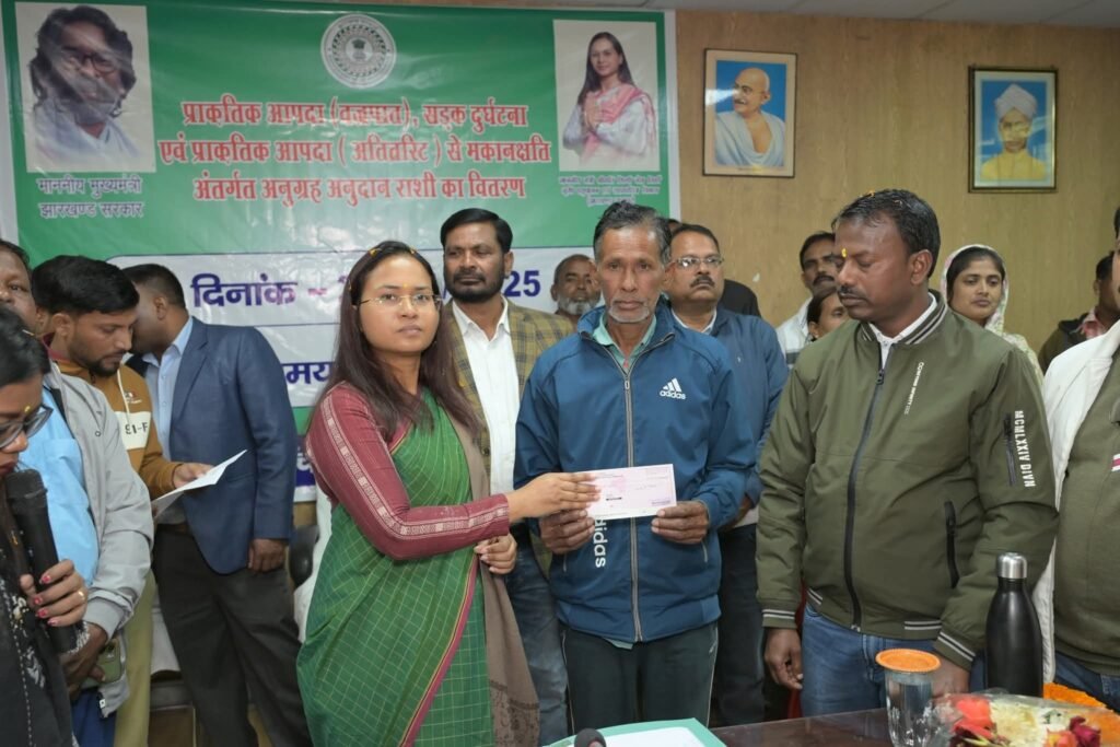 मांडर: प्राकृतिक आपदा, सड़क दुर्घटना और मकान क्षति से प्रभावित कुल 43 लाभुकों के बीच अनुग्रह अनुदान राशि का वितरण शुक्रवार को मांडर प्रखंड कार्यालय सभागार में किया गया। वितरण कार्यक्रम में झारखंड की कृषि, पशुपालन एवं सहकारिता मंत्री शिल्पी नेहा तिर्की मुख्य अतिथि के रूप में मौजूद रहीं। इस दौरान किसानों के बीच गेहूं और चना बीज भी वितरित किए गए।