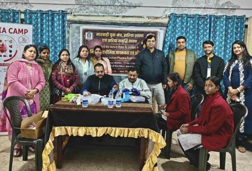 धनबाद | झरिया-:मारवाड़ी युवा मंच, झरिया शाखा एवं झरिया समृद्धि शाखा के संयुक्त तत्वावधान में मंच के 42वें स्थापना दिवस के अवसर पर Franco-Indian Pharma के सहयोग से निःशुल्क एनीमिया जागरूकता एवं हीमोग्लोबिन जाँच शिविर का आयोजन किया गया। यह शिविर योशोमती श्री विद्या निकेतन, लाल बाजार, झरिया परिसर में सफलतापूर्वक संपन्न हुआ।
