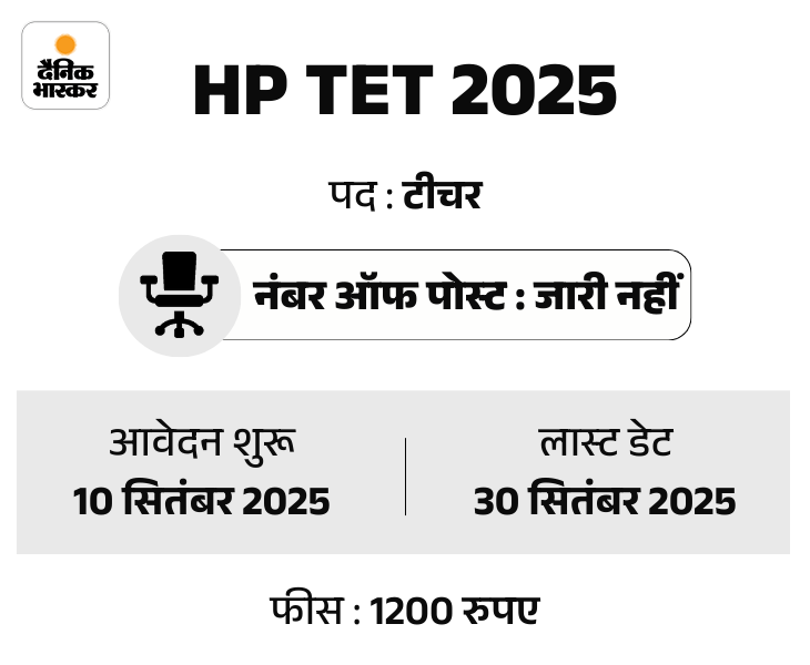 - Application For HP TET November 2025 Starts Today; Age Limit 45 Years, Exam From 2 To 16 November