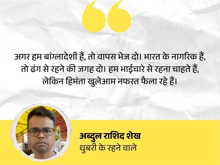 यहां मिले 26 साल के रफीकुल इस्लाम राजमिस्त्री हैं। वे कहते हैं कि मुख्यमंत्री हमें मियां या बांग्लादेशी कहते हैं, तो बहुत खराब लगता है। उनके बोल देने से हम बांग्लादेशी नहीं हो जाएंगे। हमारे पास कागज हैं।
