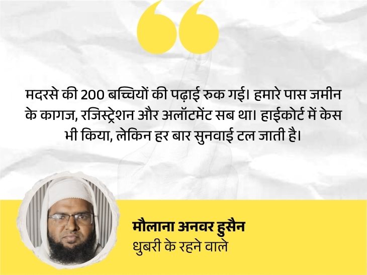 ‘200 बच्चियां पढ़ने आती थीं, सरकार ने मदरसा ही गिरा दिया’ असम सरकार ने 1 अप्रैल 2021 से सरकारी मदरसों को स्कूलों में बदलना शुरू किया। तर्क दिया कि सरकारी पैसे से धार्मिक शिक्षा नहीं दे सकते। मदरसों पर बुलडोजर भी चलाया गया। धुबरी के मौलाना अनवर हुसैन साल 2000 से बच्चों को पढ़ा रहे हैं। जुलाई, 2025 में उनका मदरसा तोड़ दिया गया। प्रशासन का दावा था कि ये सरकारी जमीन पर था।