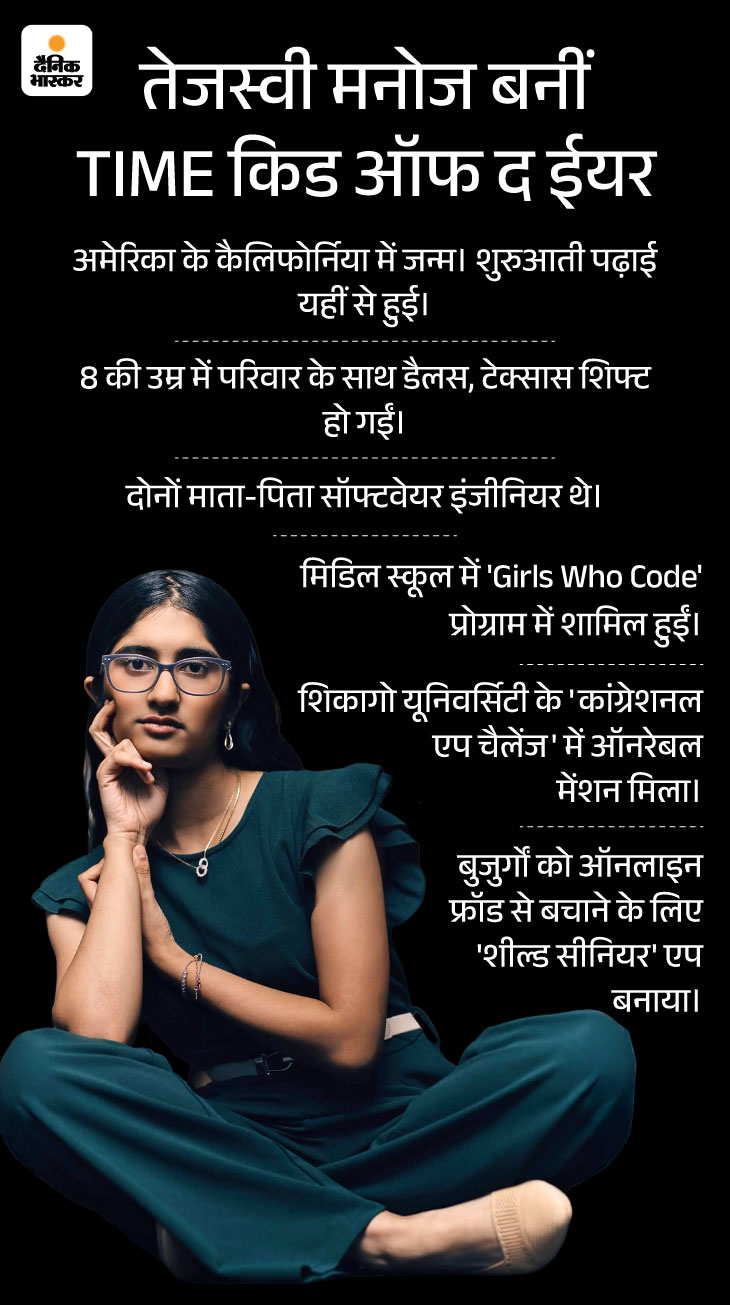 भारतीय अमेरिकी मूल की तेजस्वी मनोज टाइम किड ऑफ द ईयर 2025 बनीं।