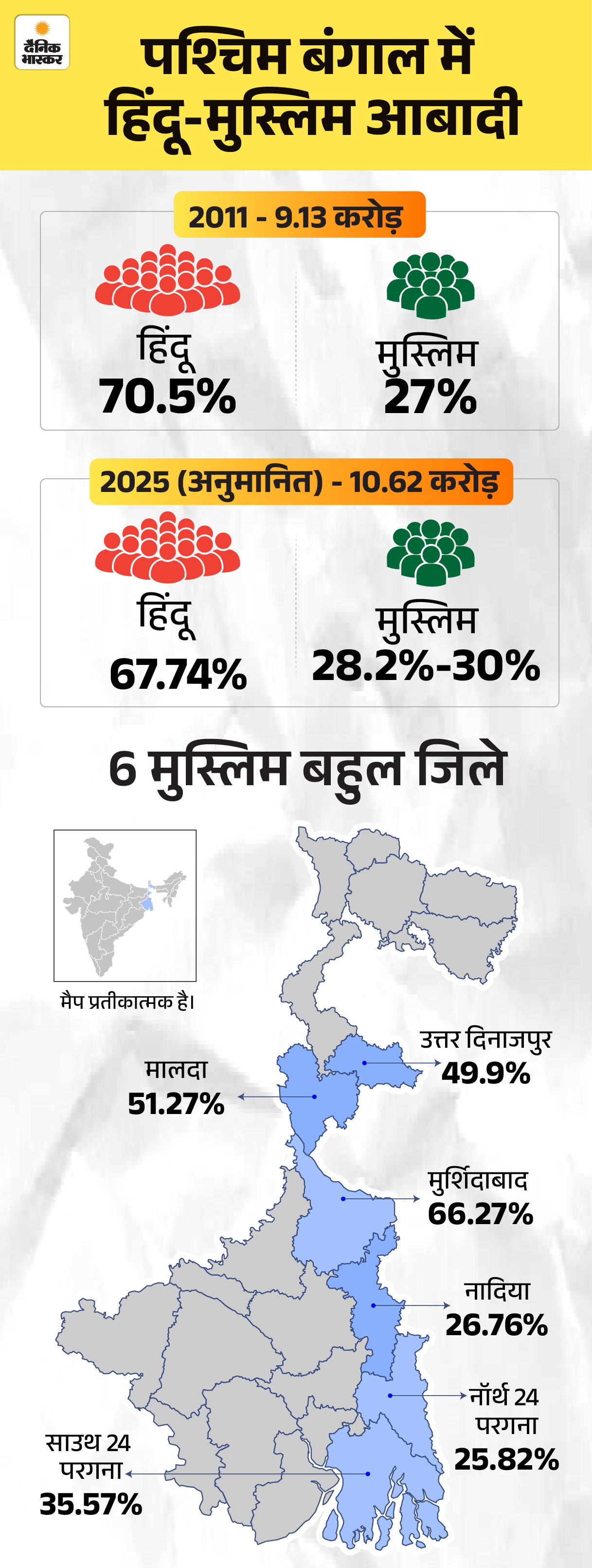 पश्चिम बंगाल में 23 और 29 अप्रैल को विधानसभा चुनाव के लिए वोटिंग होगी। 6 मुस्लिम बहुल जिलों मुर्शिदाबाद, मालदा, नॉर्थ 24 परगना, साउथ 24 परगना, नादिया और उत्तर दिनाजपुर में करीब 124 सीटें हैं। TMC छोड़कर नई पार्टी बनाने वाले हुमायूं कबीर ने बाबरी मस्जिद बनाने का ऐलान किया, तो उनकी इस कोशिश को मुस्लिम वोटों का ध्रुवीकरण करने की कोशिश माना गया। हुमायूं फिलहाल BJP से 1000 करोड़ की डील वाले वीडियो पर सफाई दे रहे हैं। इधर बाबरी मस्जिद का काम चल रहा है।