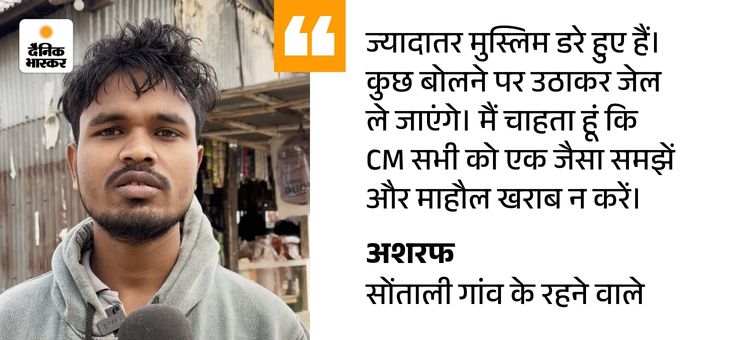 सोंताली के बाजार में अशरफ से मिले। उम्र करीब 35 साल। अशरफ कहते हैं, ‘यहां माहौल अच्छा नहीं है। हमारे मुख्यमंत्री हिटलर और डोनाल्ड ट्रम्प की तरह शासन चला रहे हैं। सीधे बोलते हैं कि मुसलमानों को हटाओ और बांग्लादेश भेजो।’