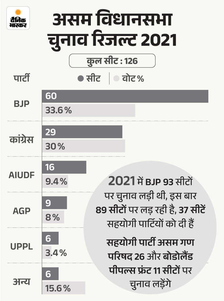असम की 126 सीटों पर 9 अप्रैल को वोटिंग होगी। हिमंता जलुकबाड़ी सीट से चुनाव लड़ रहे हैं। उन्होंने 20 मार्च को नामांकन दाखिल कर दिया है। BJP जीती तो वे दोबारा मुख्यमंत्री पद की शपथ ले सकते हैं। CM पद की शपथ लेते हुए उन्होंने कहा था, ‘मैं भारत के संविधान के प्रति सच्ची श्रद्धा और निष्ठा रखूंगा, भारत की संप्रभुता और अखंडता अक्षुण्ण रखूंगा, भय या पक्षपात, अनुराग या द्वेष के बिना, संविधान और विधि के अनुसार सभी लोगों के प्रति न्याय करूंगा’