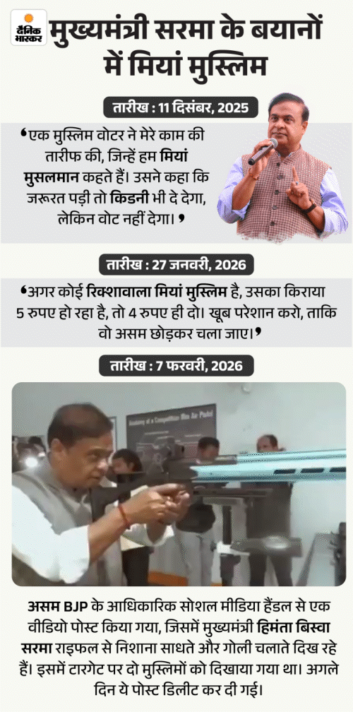 असम के मुख्यमंत्री हिमंता बिस्वा सरमा अपने भाषणों में मियां मुस्लिमों को निशाने पर रखते हैं। पिछले कुछ भाषण और सोशल मीडिया पोस्ट में उन्होंने मियां मुस्लिमों पर ऐसे बयान दिए, जिससे मुख्यमंत्री और मियां मुस्लिम दोनों विवादों में आ गए।