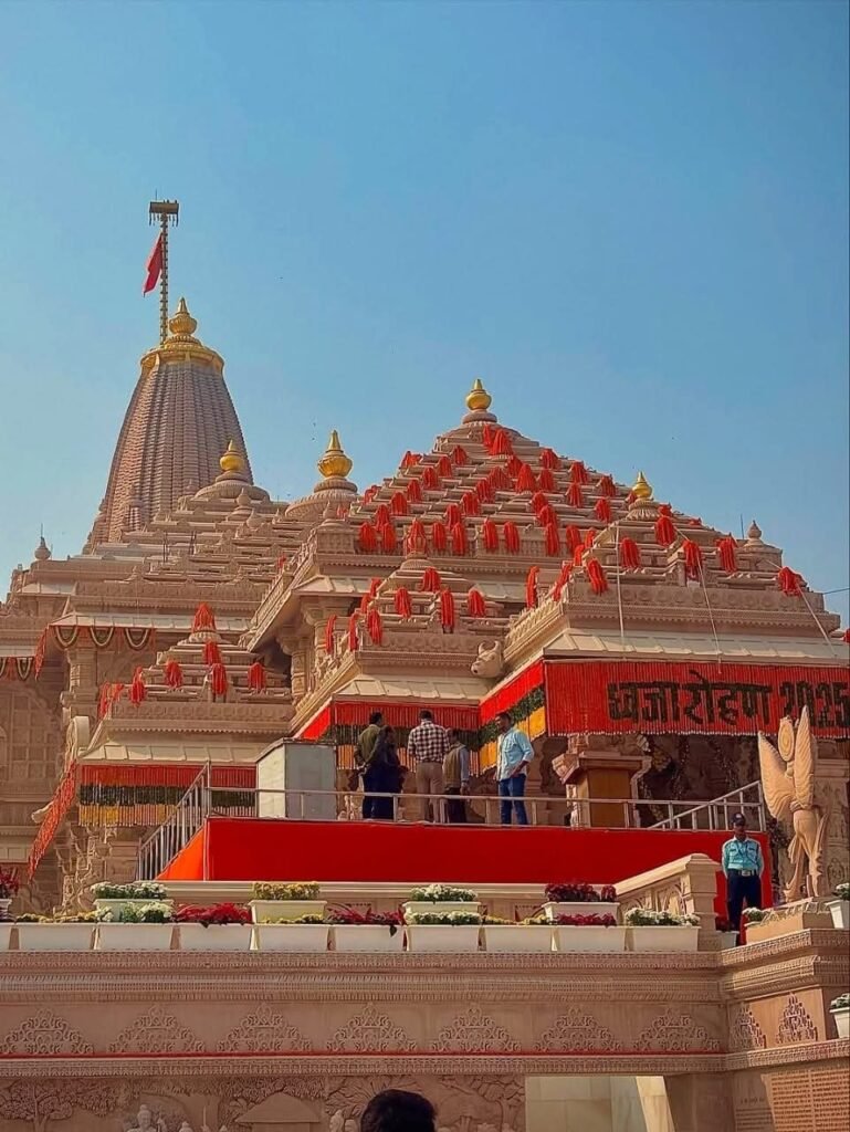 विशेष ध्वजा, विशेष प्रतीक—राम राज्य का संदेश केसरिया रंग का यह समकोण त्रिभुजाकार ध्वज 10 फीट ऊंचा और 20 फीट लंबा है। लगभग 2–3 किलोग्राम वजन वाले इस पवित्र ध्वज पर तीन प्रमुख चिन्ह अंकित हैं—दीप्तिमान सूर्य: भगवान राम के तेज और मर्यादा का प्रतीकॐ का चिह्न: सनातन आस्था का प्रतिनिधित्वकोविदार वृक्ष: सांस्कृतिक मूल्यों और आध्यात्मिक परंपरा का प्रतीक