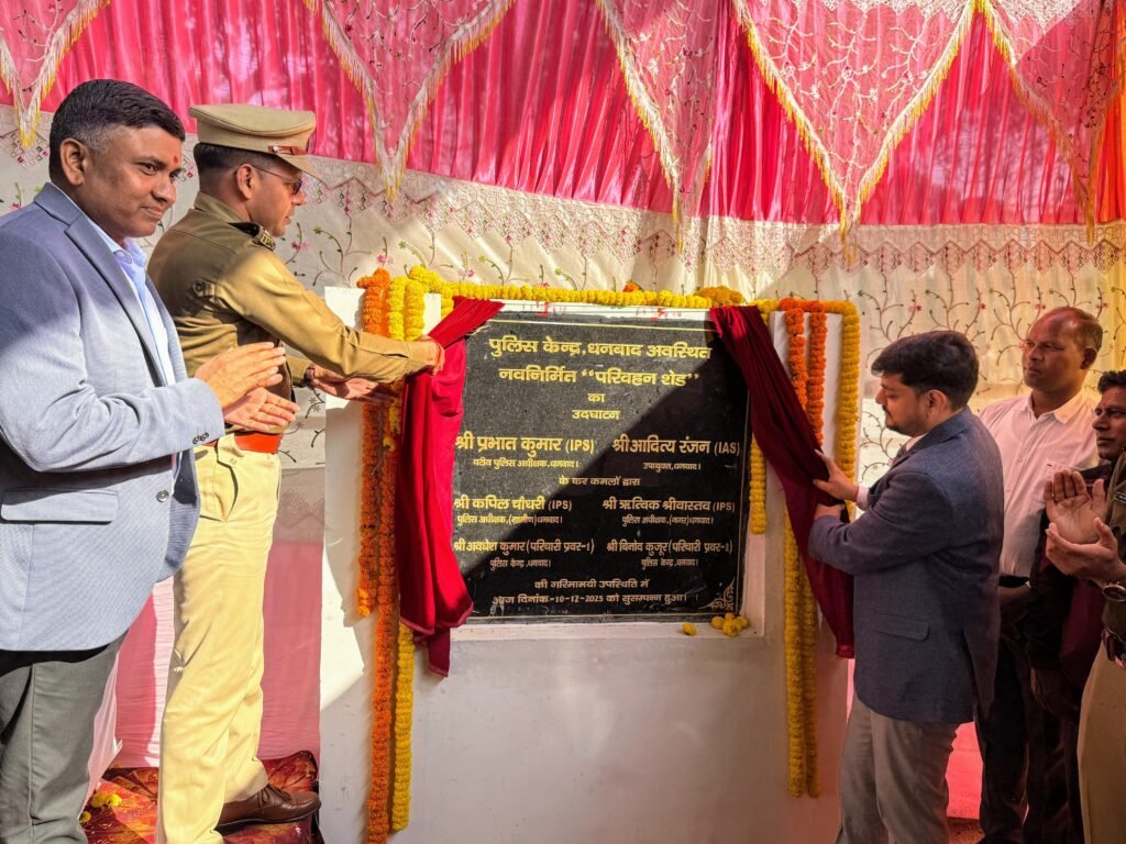 धनबाद — 10 दिसंबर 2025,धनबाद पुलिस की कार्यक्षमता और संसाधनों को मजबूत बनाने की दिशा में एक महत्वपूर्ण कदम उठाते हुए उपायुक्त-सह-जिला दंडाधिकारी श्री आदित्य रंजन और वरीय पुलिस अधीक्षक श्री प्रभात कुमार ने बुधवार को पुलिस केंद्र धनबाद में नव निर्मित आधुनिक परिवहन शेड का उद्घाटन किया। कार्यक्रम में कई वरिष्ठ पुलिस अधिकारी, प्रशासनिक अधिकारी और बड़ी संख्या में पुलिसकर्मी उपस्थित थे।