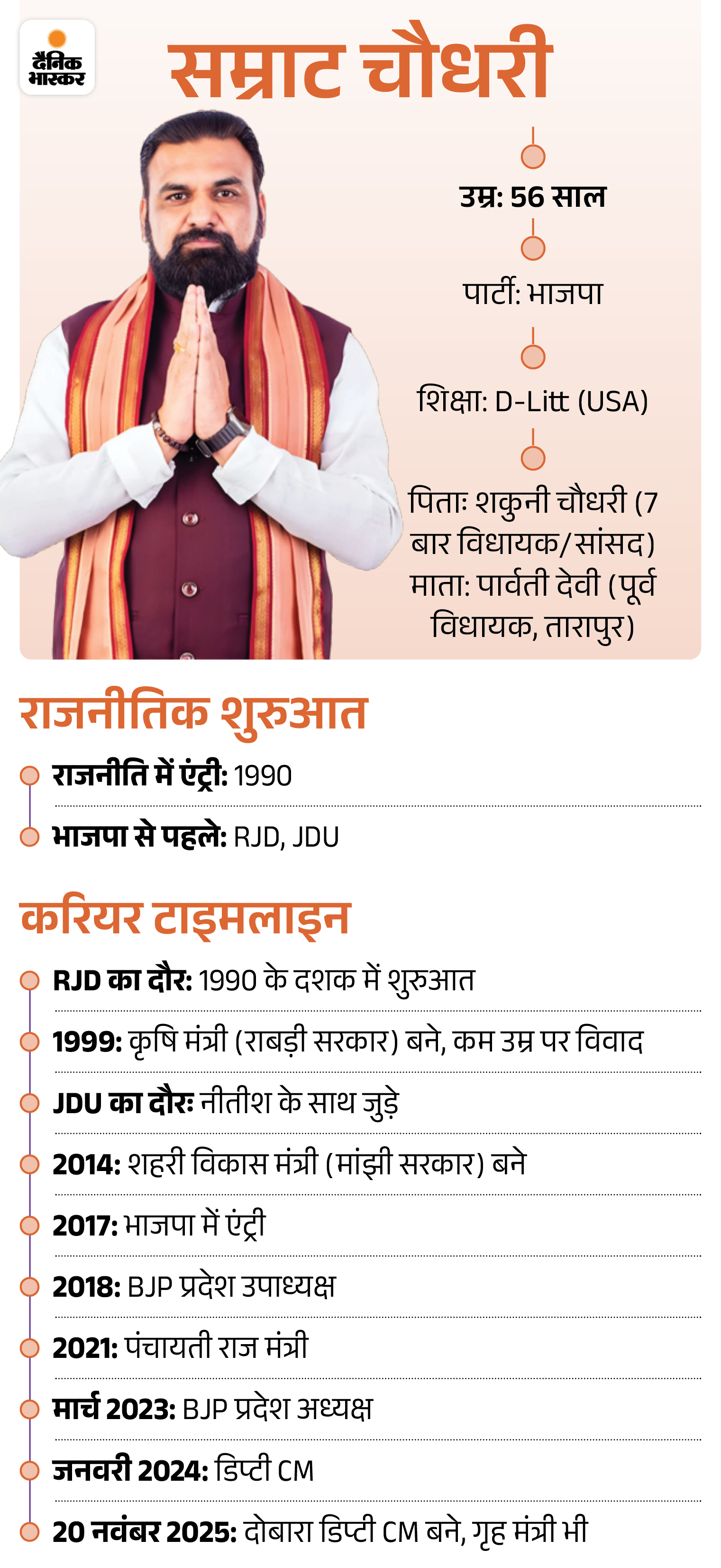सम्राट ने राज्यपाल से मिलकर सरकार बनाने का दावा पेश किया।