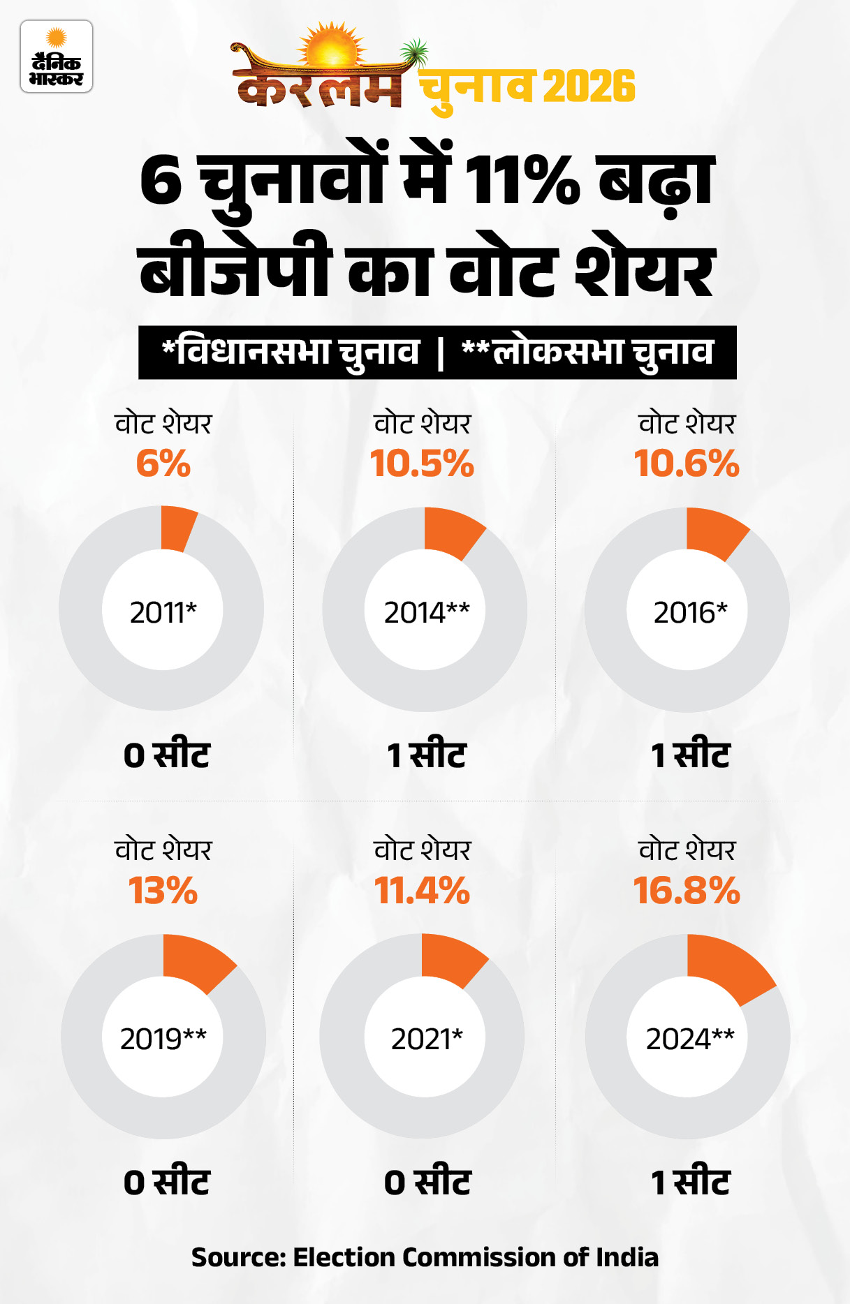 • वहीं बीजेपी का वोट शेयर 16.8% हो गया, जो 2019 में 13% था। इस चुनाव से माना जाने लगा कि बीजेपी केरलम में तीसरा ऑप्शन बन सकती है।