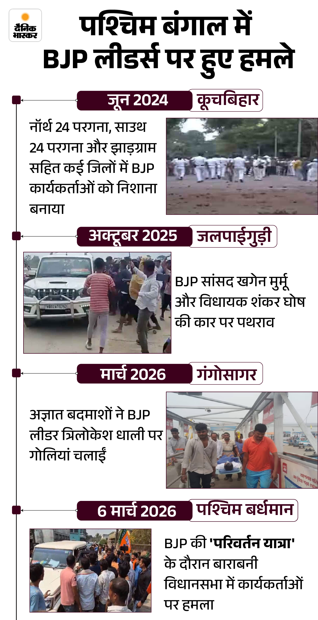 BJP कार्यकर्ताओं हमले का खौफ कम करने की कोशिश साउथ के इलाकों में यात्रा के दौरान कम भीड़ पहुंचने को लेकर हमने आसनसोल के सीनियर जर्नलिस्ट सतीश चंद्रा से बात की। वे कहते हैं, ‘आसनसोल की बाराबनी विधानसभा सीट पर BJP कार्यकर्ताओं पर हमला हुआ। ऐसे ही हालात राज्य के बाकी इलाकों में भी देखने को मिले।’