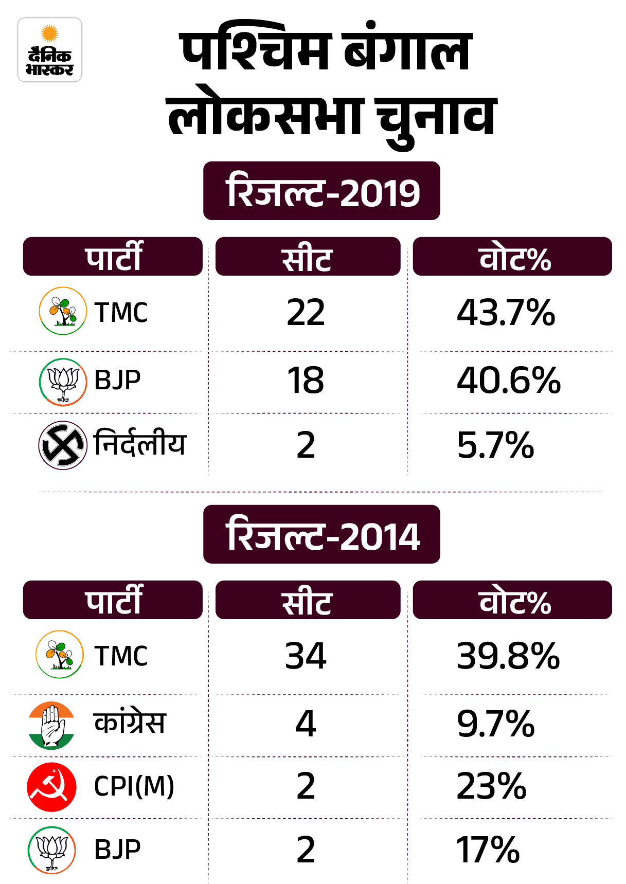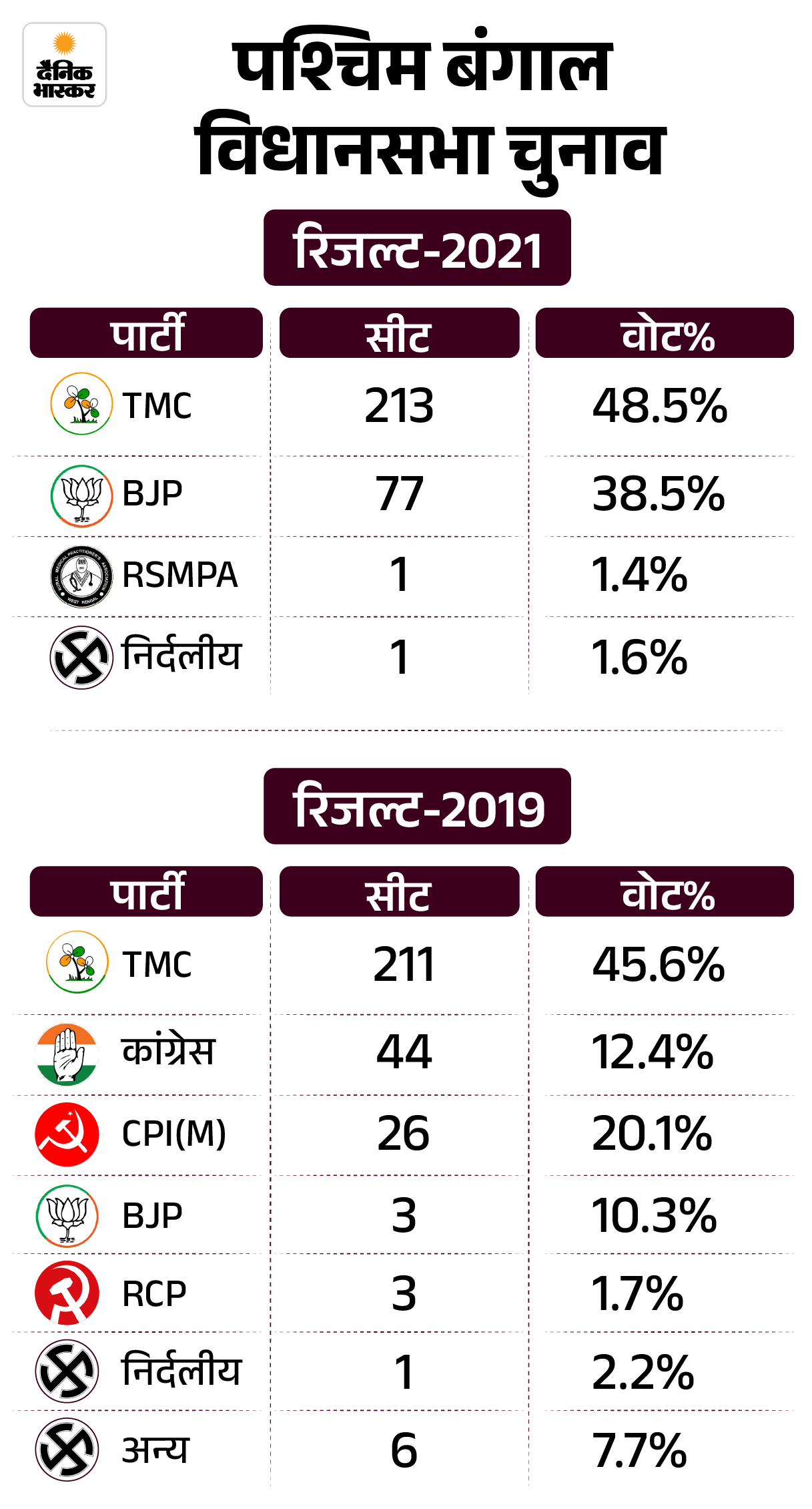 ’दूसरी अहम बात ये है कि पश्चिम बंगाल में विधानसभा चुनाव से पहले लोकसभा चुनाव होता है। इसमें जिनकी सीट बढ़ती है, वहीं विधानसभा चुनाव में जीत हासिल करता है। 2019 लोकसभा और 2021 विधानसभा के नतीजों से ये साफ है। BJP ने 2019 के लोकसभा चुनाव में 18 सीटें जीतीं। इसका असर 2021 के विधानसभा चुनाव में भी दिखा। 77 सीटें जीतकर BJP ने राज्य से कांग्रेस और लेफ्ट का पत्ता साफ कर दिया था।’