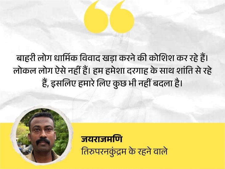 जैनुलाबुद्दीन 40 साल पहले तिरुपरनकुंद्रम में आकर बसे थे। वे कहते हैं कि मैंने इस विवाद के बारे में कभी नहीं सुना। यहां हिंदू दरगाह जाते हैं और मुस्लिम मंदिर के रथ उत्सव में शामिल होते हैं। परिवार की तरह साथ रहते हैं।’