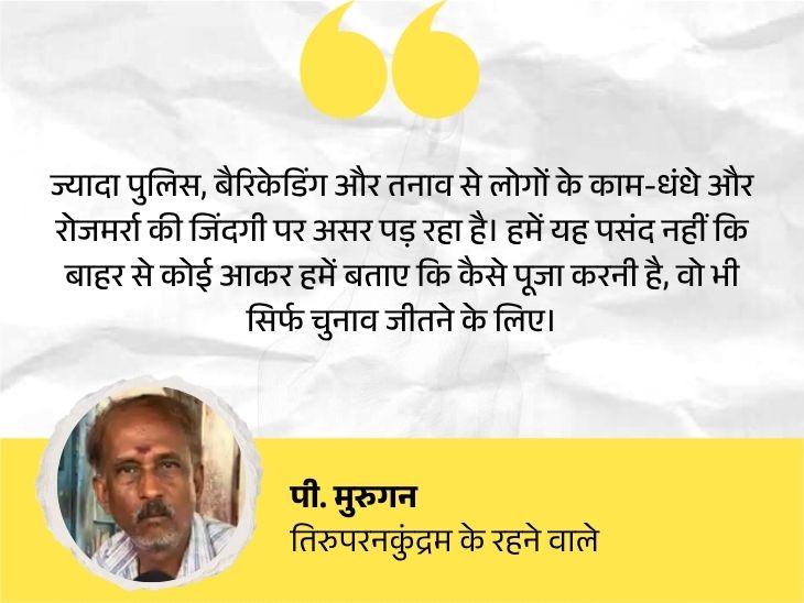 वहीं, स्थानीय पत्रकार राहुल कहते हैं कि तिरुपरनकुंद्रम मंदिर विवाद का चुनाव में खास असर नहीं होगा। यहां लोग धार्मिक हैं। हर गली-नुक्कड़ पर मंदिर है, लेकिन लोग राजनीति में धार्मिक मुद्दे शामिल करने को पसंद नहीं करते।