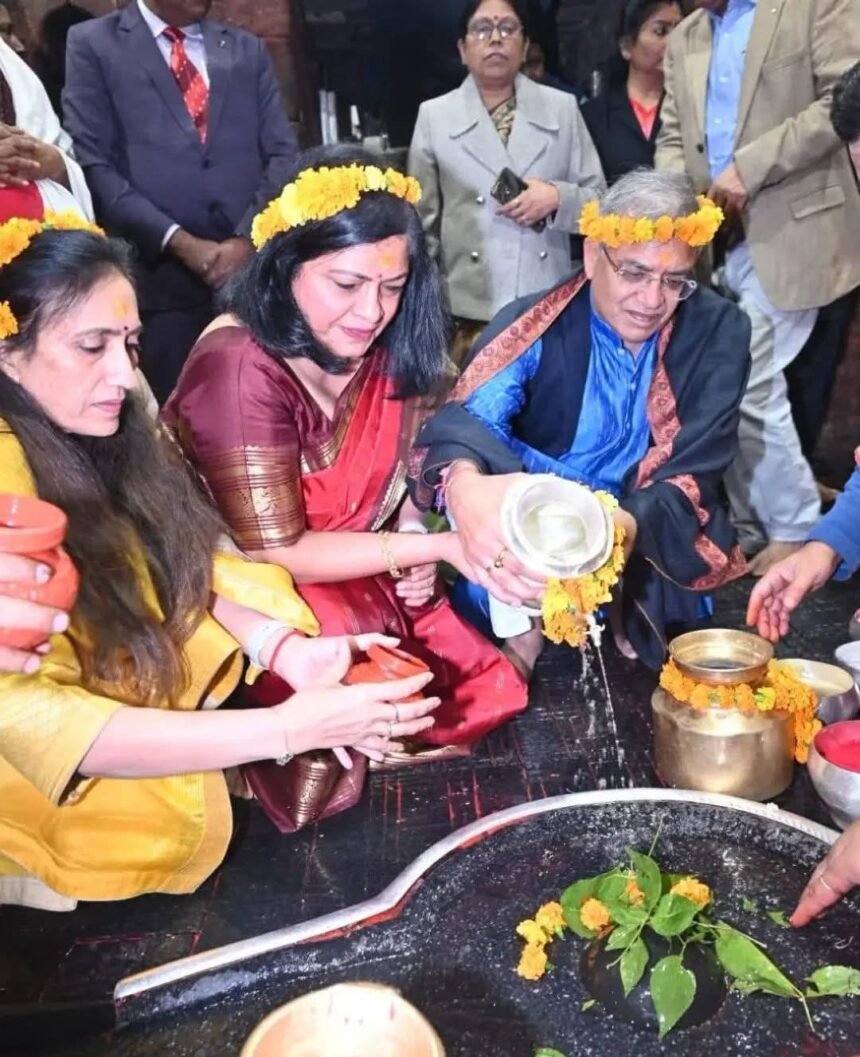 देवघर:भारत के मुख्य निर्वाचन आयुक्त ज्ञानेश कुमार ने सपरिवार देवघर स्थित बाबा बैद्यनाथ धाम पहुंचकर पूजा-अर्चना की और द्वादश ज्योतिर्लिंग भगवान बाबा बैद्यनाथ का आशीर्वाद लिया। इस अवसर पर मंदिर परिसर में तीर्थ पुरोहितों द्वारा विधि-विधान एवं मंत्रोच्चार के साथ संकल्प कराया गया।