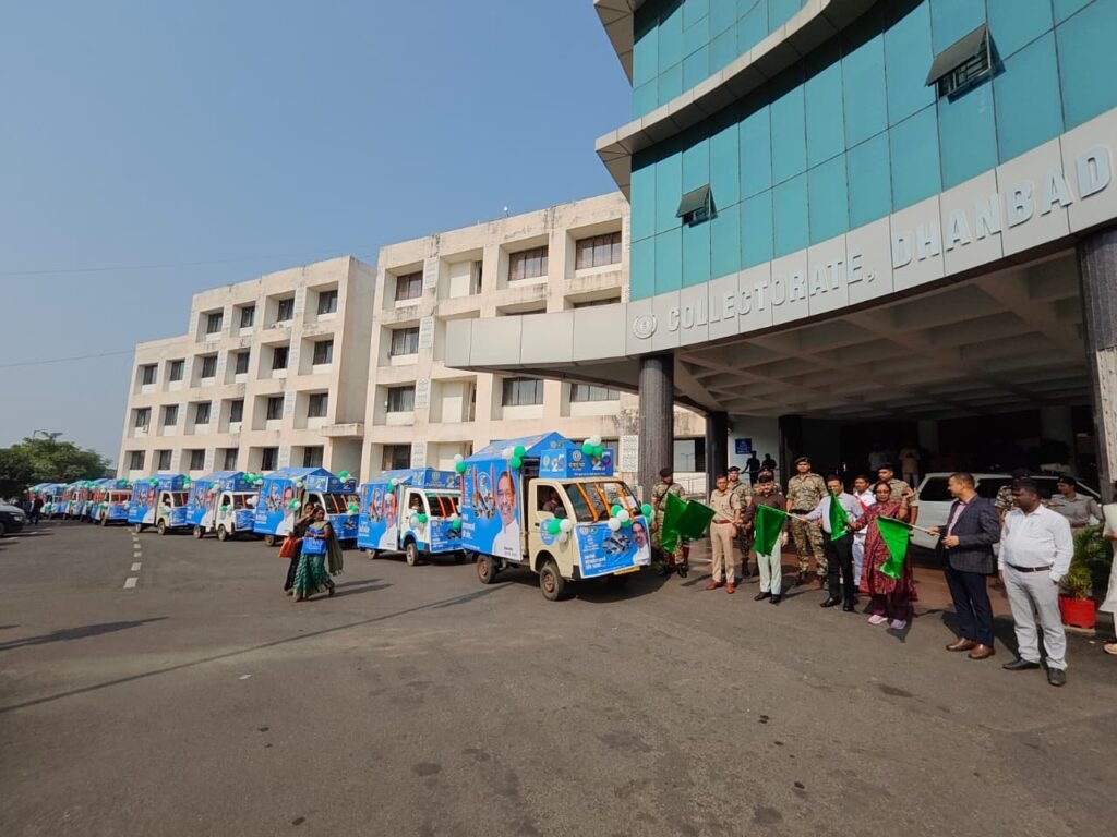 धनबाद, 11 नवंबर 2025झारखंड राज्य स्थापना के 25वें गौरवशाली वर्ष (रजत जयंती) के उपलक्ष्य में आज धनबाद में उत्सव और जनजागरूकता का माहौल देखने को मिला। जिला समाहरणालय परिसर से उपायुक्त सह जिला दंडाधिकारी श्री आदित्य रंजन एवं वरीय पुलिस अधीक्षक श्री प्रभात कुमार ने जनकल्याणकारी योजनाओं के प्रचार-प्रसार हेतु जागरूकता रथ को हरी झंडी दिखाकर रवाना किया।