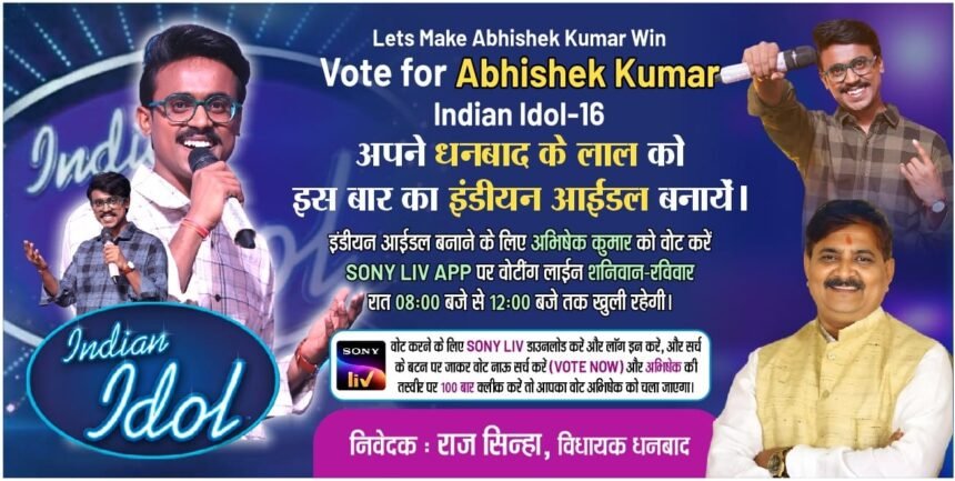 विधायक राज सिन्हा ने शहरभर में पोस्टर, सोशल मीडिया संदेशों तथा लोगों से सीधे संवाद के माध्यम से कहा कि अभिषेक कुमार न सिर्फ धनबाद बल्कि पूरे झारखंड का नाम रोशन कर रहे हैं। उन्होंने कहा —”अभिषेक कुमार की प्रतिभा और उनकी मधुर आवाज़ को पूरा देश सुन रहा है। उनकी मेहनत सराहनीय है। स्वयं संगीत जगत की महान कलाकार श्रेया घोषाल ने भी उनके गायन की प्रशंसा की है। ऐसे स्वर्णिम अवसर पर धनबाद की जनता को एकजुट होकर उन्हें समर्थन देना चाहिए।”
