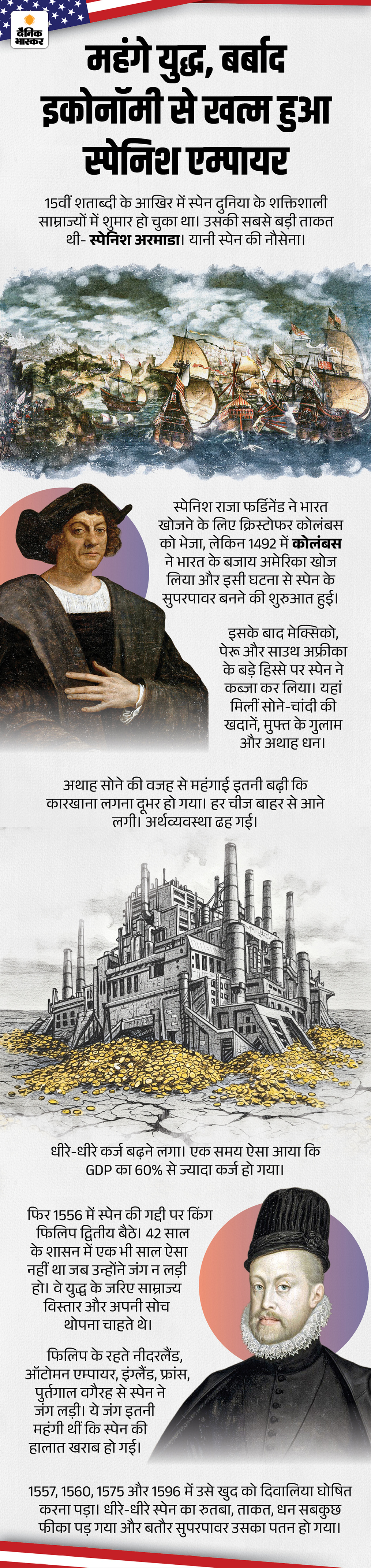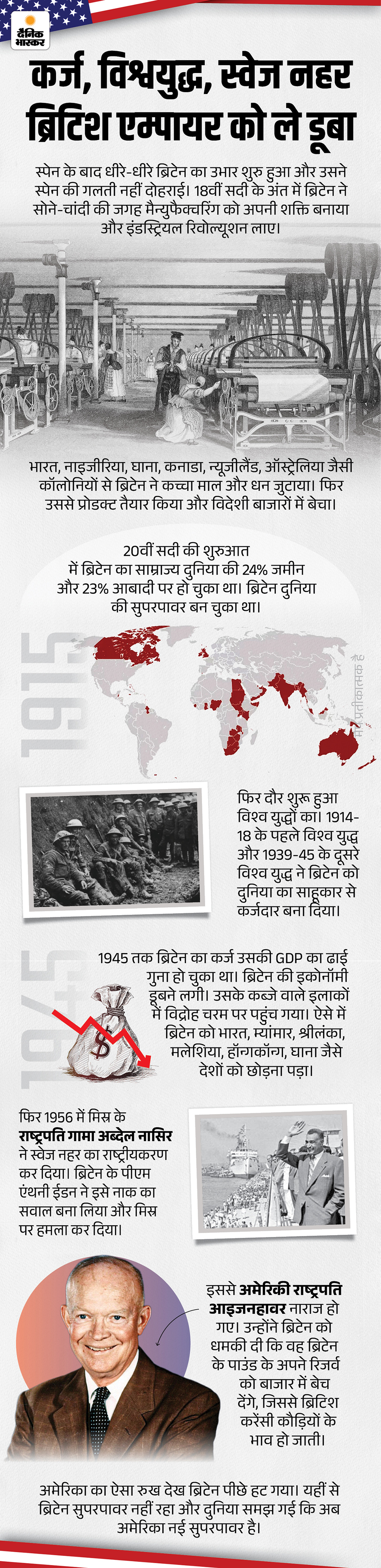 अमेरिका ने उपनिवेश नहीं बनाए। उसने डॉलर का इस्तेमाल किया। ऐसी व्यवस्था बनाई की दुनिया के देश अंतरराष्ट्रीय व्यापार में डॉलर का इस्तेमाल करेंगे। इसके बूते अमेरिका सुपरपावर बना। अब युद्धों, फिजूल खर्चों, पॉपुलिस्ट फैसलों का शिकार होकर अमेरिका भी स्पेन और ब्रिटेन वाली गलती कर रहा है।