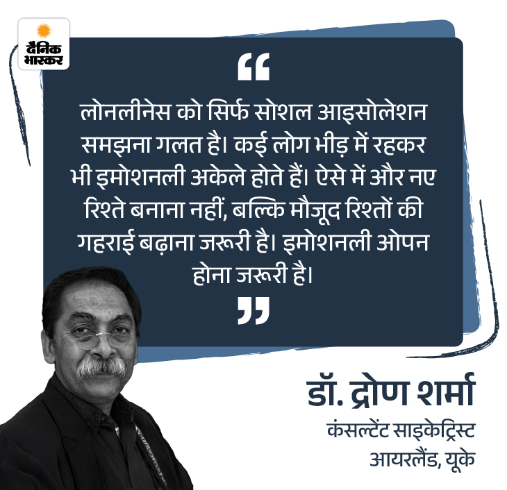 आज इमोशनल लोनलीनेस सिर्फ ‘अकेले रहना’ नहीं है। इमोशनल लोनलीनेस का मतलब है, लोगों से घिरे होने और भीड़ में रहने के बावजूद यह महसूस करना कि-