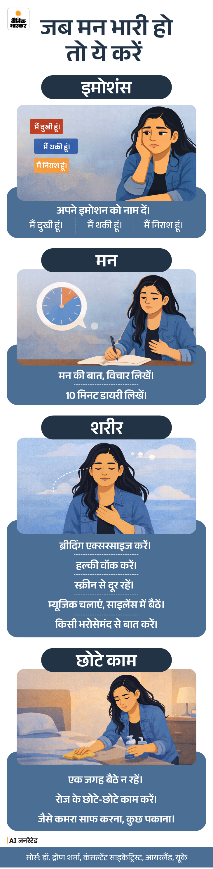 इसके अलावा, रोज 10 मिनट शांति से बैठकर खुद से पूछें—