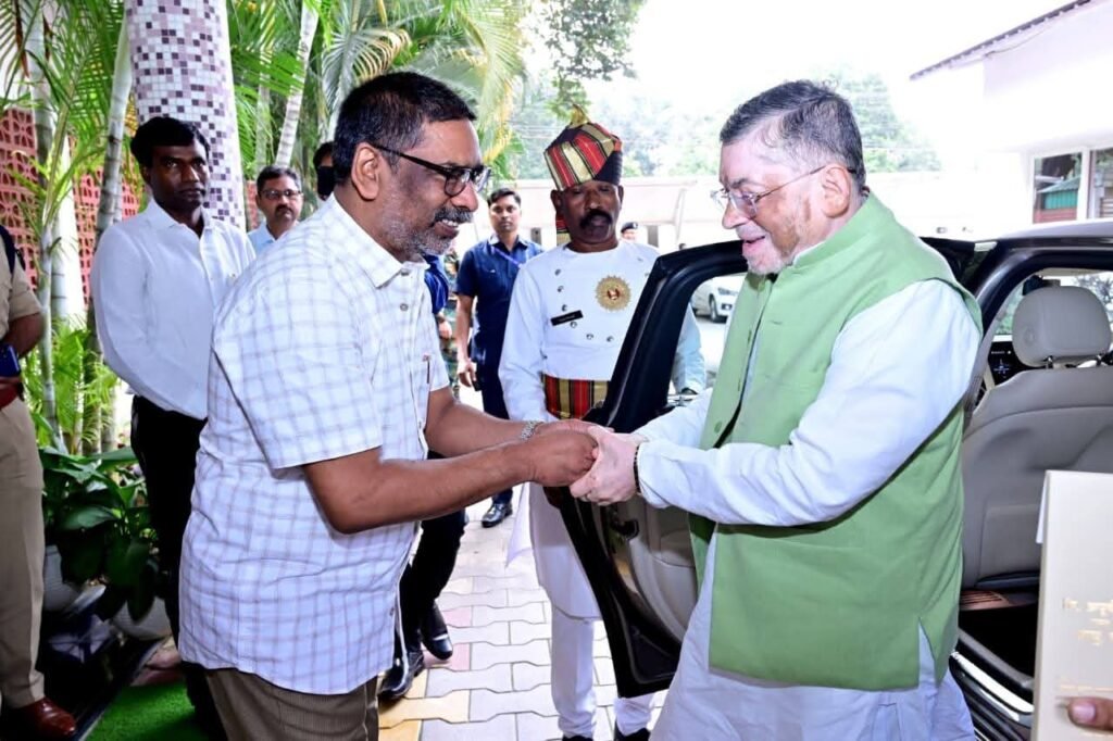 रांची, 28 अक्टूबर 2025-:झारखंड के राज्यपाल संतोष कुमार गंगवार ने सोमवार को कांके रोड स्थित मुख्यमंत्री आवास पहुंचकर मुख्यमंत्री हेमंत सोरेन से सौजन्य मुलाकात की।
