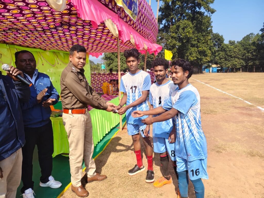 उद्घाटन मुकाबला बेटा ब्रदर्स टीम और बुरुहुन टीम के बीच खेला गया, जो काफी रोमांचक रहा। निर्धारित समय तक दोनों टीमें गोल नहीं कर सकीं, जिसके बाद मैच का निर्णय पेनल्टी शूटआउट से हुआ। पेनल्टी में बुरुहुन टीम ने 3–2 से जीत दर्ज की।मुख्य अतिथि बालेश्वर उरांव ने पहला गोल करने वाले खिलाड़ी को 1500 रुपये तथा उद्घाटन मैच की विजेता बुरुहुन टीम को 3000 रुपये नगद पुरस्कार देने की घोषणा की, जिसे मौके पर ही प्रदान किया गया।