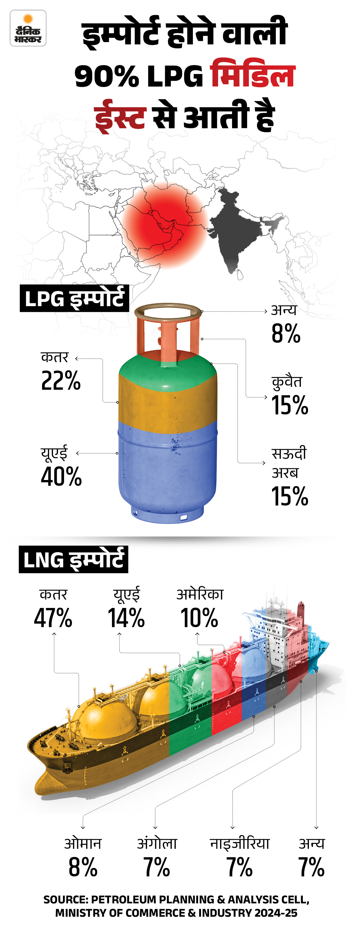 यूएई, कतर, सऊदी अरब, कुवैत जैसे खाड़ी देशों से भारत की विदेश एलपीजी सप्लाई का 90% और एलएनजी का 70% खरीदता है। यहां से शिप महज 4-5 दिन में भारतीय बंदरगाहों तक पहुंच जाते हैं।