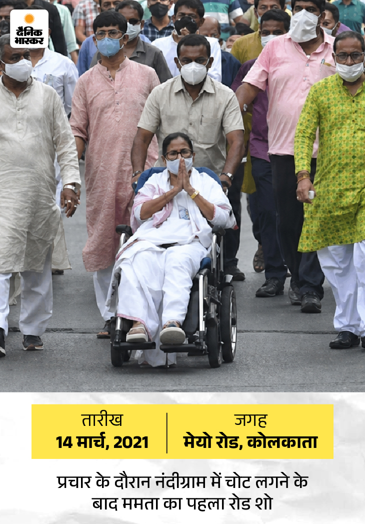 2021 में ममता नंदीग्राम सीट से चुनाव लड़ रही थीं। प्रचार के दौरान पैर में चोट लगी। इसके बाद व्हीलचेयर पर नजर आईं। उसी पर बैठकर 5 किलोमीटर लंबा रोड शो किया। तब ममता ने कहा था- A wounded tiger is more dangerous, यानी घायल शेर ज्यादा खतरनाक होता है।