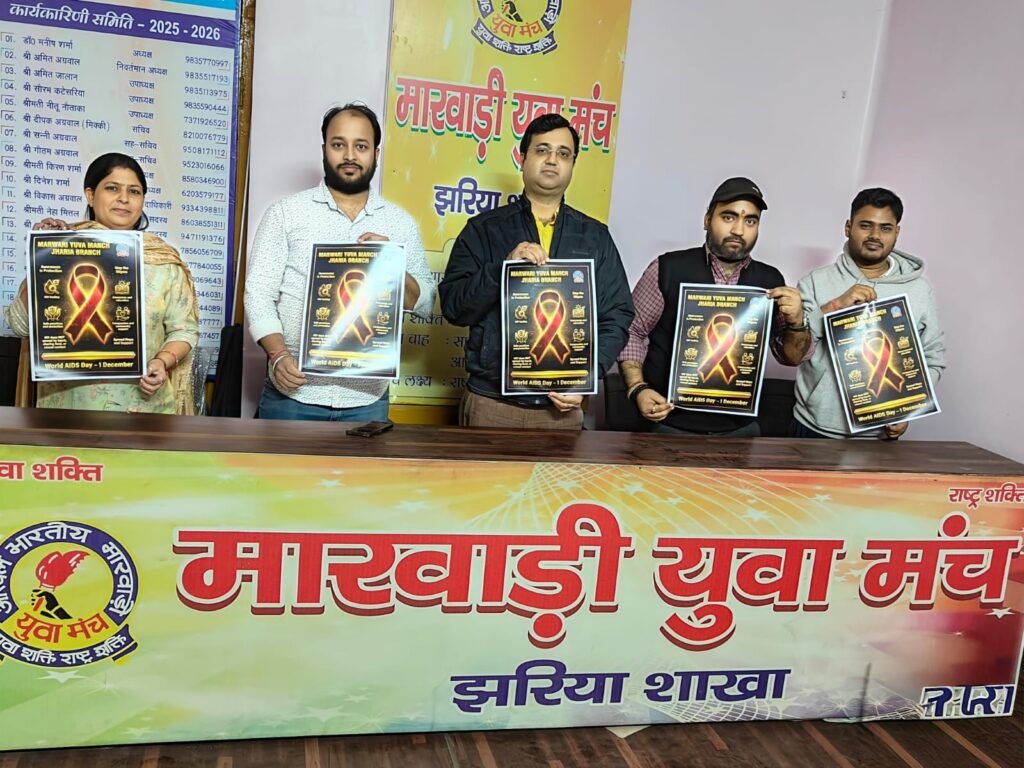 झरिया: विश्व एड्स दिवस के अवसर पर मारवाड़ी युवा मंच, झरिया शाखा ने एड्स जागरूकता को बढ़ाने के लिए विशेष अभियान की शुरुआत की। कार्यक्रम के तहत संगठन ने जागरूकता पोस्टर का लोकार्पण किया और इसके बाद शहर के प्रमुख स्थानों—मुख्य चौराहों, भीड़भाड़ वाले बाजारों और सार्वजनिक इलाक़ों में—इन पोस्टरों को लगाया।