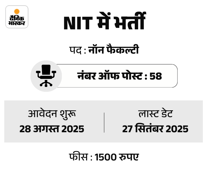 नेशनल इंस्टीट्यूट ऑफ टेक्नोलॉजी (NIT) जालंधर में नॉन टीचिंग के पदों पर भर्ती निकाली है। उम्मीदवार एनआईटी जालंधर की ऑफिशियल वेबसाइट nitj.ac.in पर जाकर आवेदन कर सकते हैं।