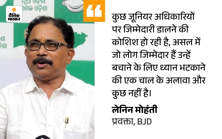 इस बीच, विपक्षी पार्टी बीजू जनता दल(BJD) ने चार जूनियर अधिकारियों के निलंबन को सिर्फ दिखावा बताया। BJD के प्रवक्ता लेनिन मोहंती ने आरोप लगाया कि राज्य सरकार ने इतने संवेदनशील मामले को लेकर बहुत ही लापरवाही भरा रवैया अपनाया है।