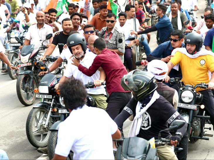 तस्वीर अगस्त 2025 की है, जब पूर्णिया में सुरक्षा घेरा तोड़कर एक युवक वोटर अधिकार रैली में पहुंचा और राहुल को किस किया था।