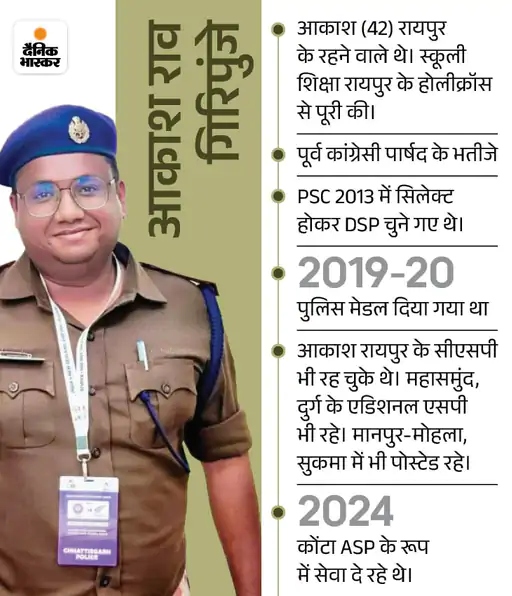 शहीद आकाश राव गिरिपूंजे केवल एक बहादुर अफसर नहीं थे, वे उन चंद लोगों में से थे जिनका सपना था सिस्टम का हिस्सा बनकर बदलाव लाना। 5 राज्यों की PSC निकालने वाला ये युवा अफसर आकाश नक्सलियों के लगाए IED ब्लास्ट में शहीद हो गए। पढ़ें पूरी खबर 2. सुकमा में IED ब्लास्ट में ASP आकाश राव शहीद: कोंटा SDOP और TI जख्मी, रायपुर लाया गया; CM बोले- नक्सलियों का अस्तित्व मिटा देंगे