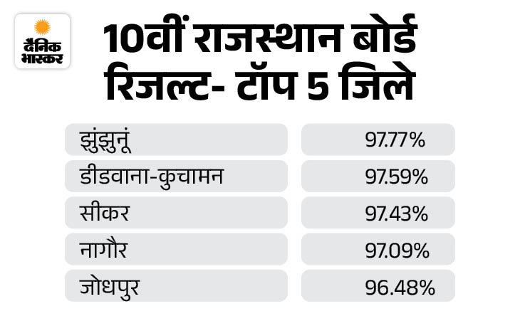 मंगलवार दोपहर करीब एक बजे राजस्थान बोर्ड 10वीं के रिजल्ट घोषित किए गए।