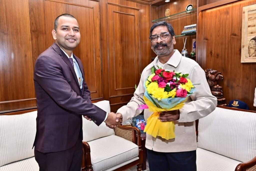 रांची:मुख्यमंत्री हेमन्त सोरेन से आज मुख्यमंत्री आवासीय कार्यालय में विभिन्न विभागों के वरिष्ठ प्रशासनिक, पुलिस एवं अन्य गणमान्य पदाधिकारियों ने शिष्टाचार भेंट की और उन्हें नववर्ष की बधाई एवं शुभकामनाएं दीं। मुख्यमंत्री ने भी सभी आगंतुकों को नववर्ष की शुभकामनाएं देते हुए राज्य के विकास, सुशासन और जनकल्याण के लिए मिलकर कार्य करने का आह्वान किया।