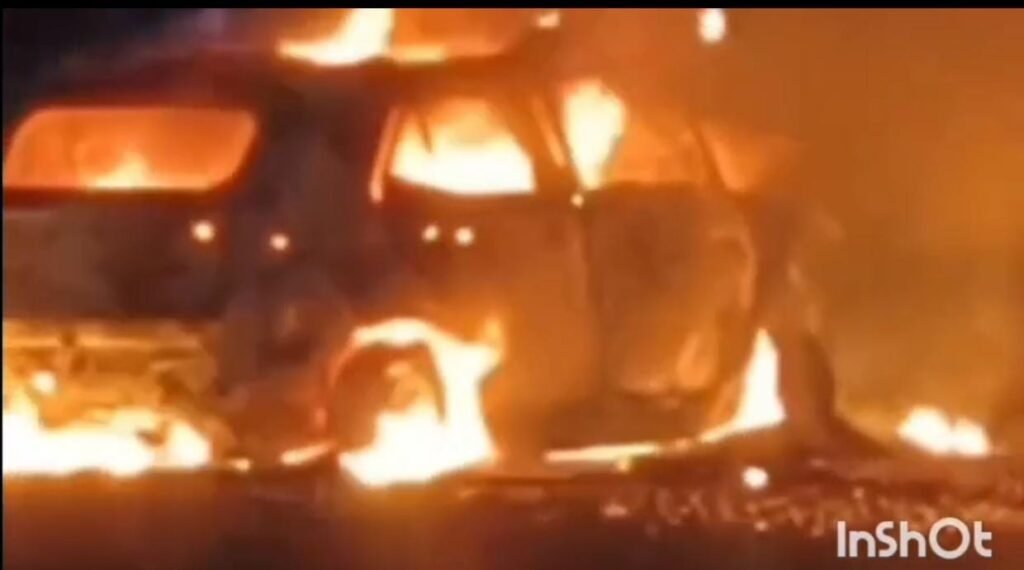 टक्कर इतनी भयानक थी कि दोनों वाहन आग की लपटों में घिर गए। कार में सवार तीन युवकों में से दो युवक बाहर नहीं निकल पाए और जिंदा जलकर उनकी दर्दनाक मौत हो गई। वहीं तीसरा युवक किसी तरह बाहर निकलने में सफल रहा।