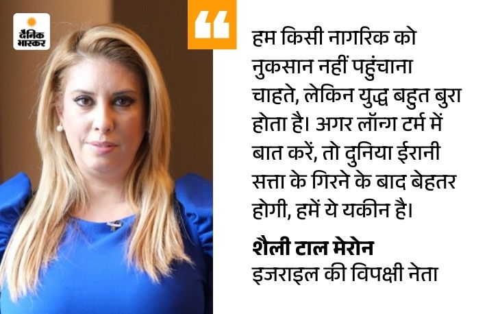 सवाल: इजराइल-अमेरिका की स्ट्राइक से ईरान में सत्ता बदलने के लिए माहौल बनेगा? जवाब: हमें यही उम्मीद है, लेकिन मैं अपने स्तर पर ये बात नहीं कह सकती कि सत्ता परिवर्तन होगा या नहीं। हमें लगता है कि ईरान में खामेनेई का न होना ईरान के लिए बेहतर भविष्य होगा।