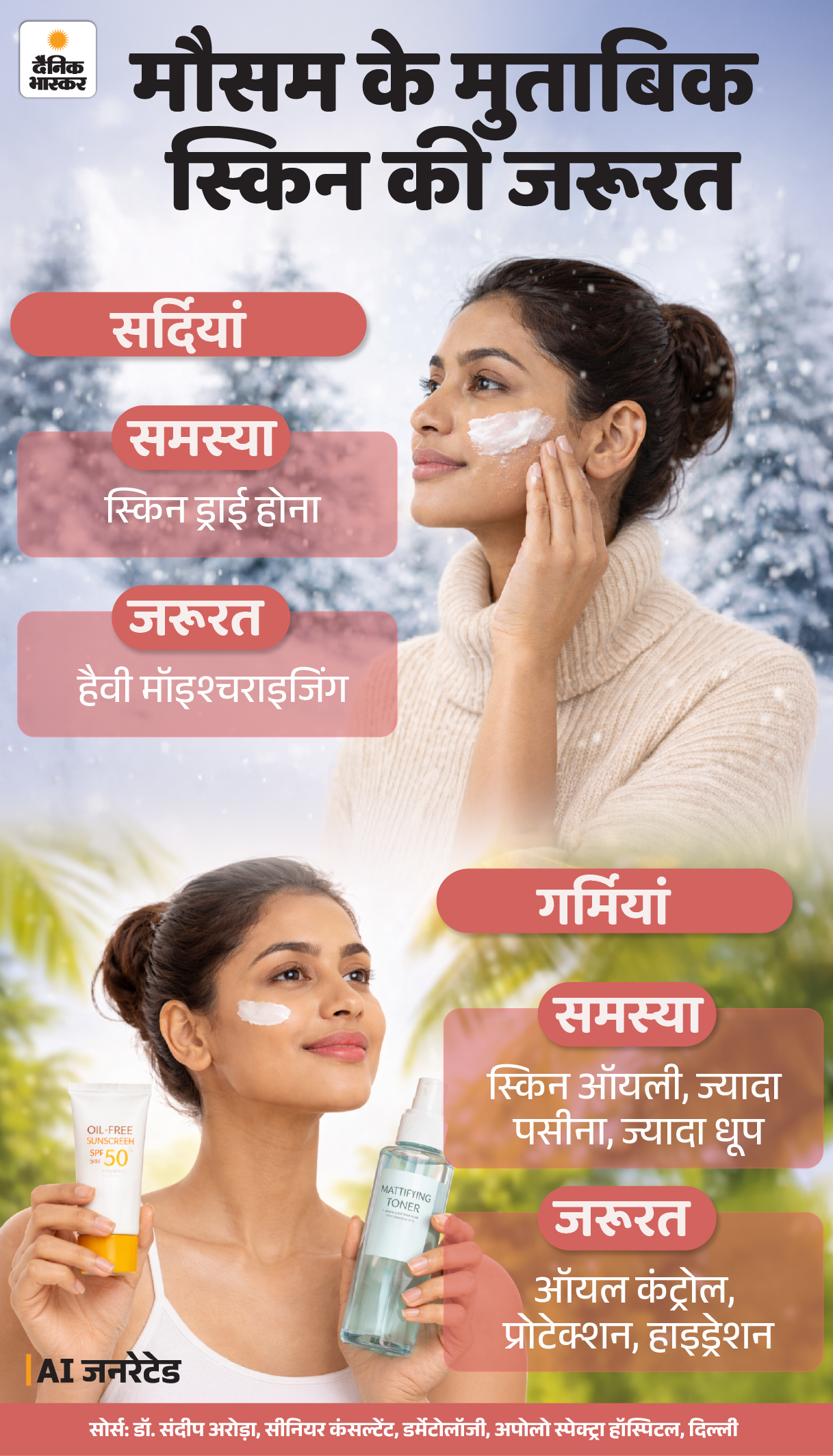 हर मौसम में स्किन की जरूरत अलग होती है। इसलिए जरूरत और प्रॉब्लम के मुताबिक केयर रूटीन भी बदलना जरूरी है।