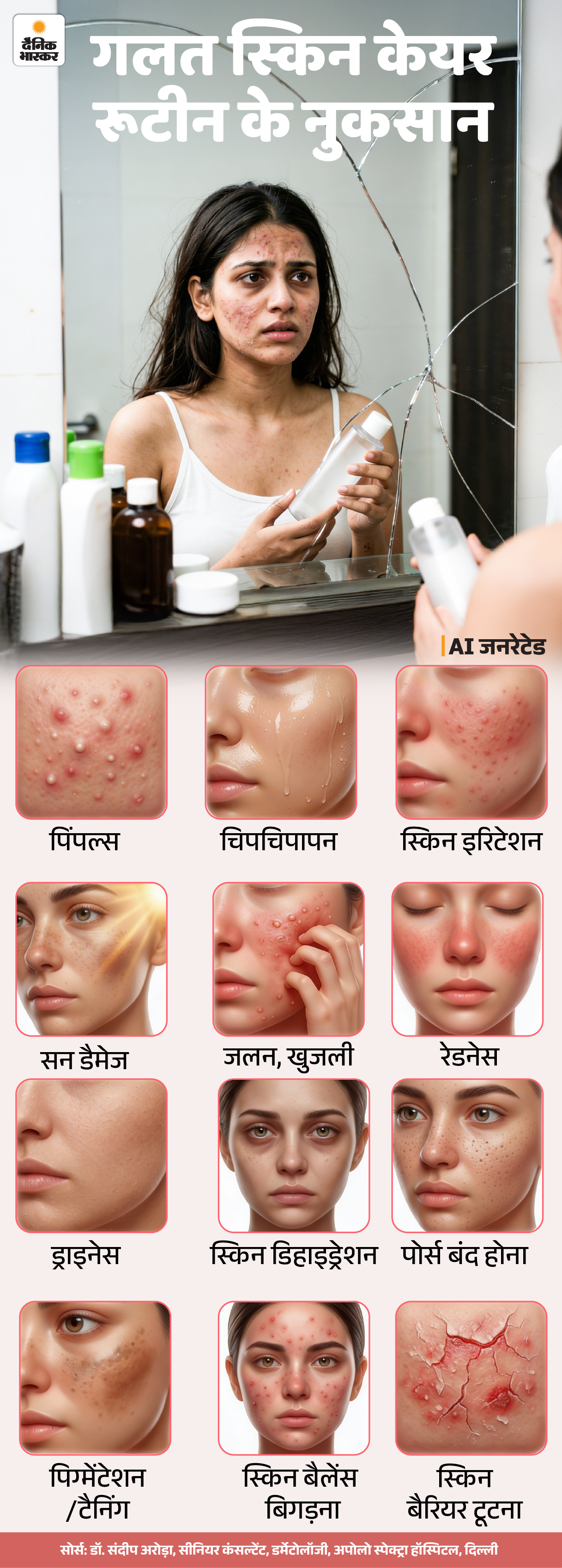 सवाल- गलत स्किनकेयर रूटीन अपनाने से किस तरह की स्किन प्रॉब्लम्स हो सकती हैं?