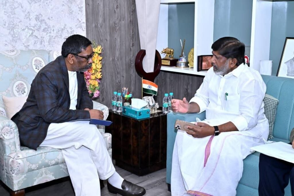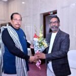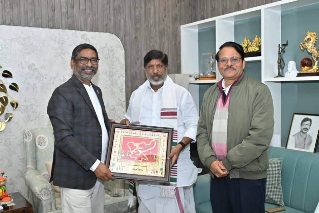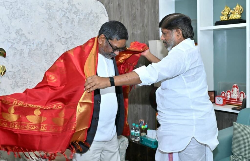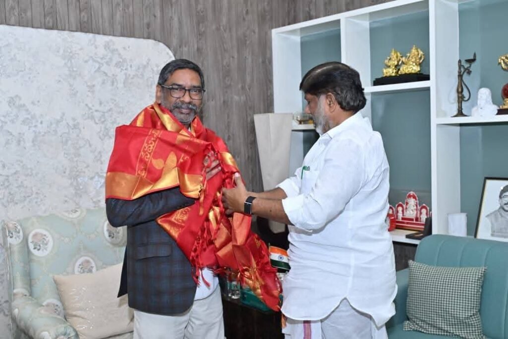 रांची। कांके रोड स्थित मुख्यमंत्री आवासीय कार्यालय में आज तेलंगाना के उप मुख्यमंत्री मल्लू भट्टी विक्रमार्क ने मुख्यमंत्री हेमन्त सोरेन से शिष्टाचार भेंट की। इस दौरान उन्होंने मुख्यमंत्री सोरेन को हैदराबाद में 8-9 दिसंबर को आयोजित होने वाले ‘तेलंगाना राइजिंग ग्लोबल समिट’ में शामिल होने का औपचारिक निमंत्रण सौंपा।