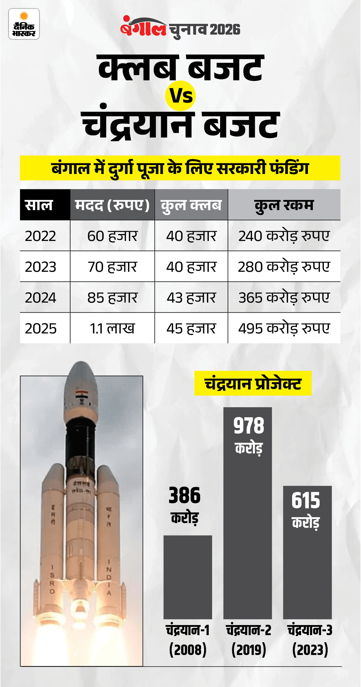 अब तक सरकार क्लबों को 3,500 से 5,000 करोड़ रुपए दे चुकी है। 2025 में इन पर 495 करोड़ खर्च किए। ये 386 करोड़ रुपए लागत वाले भारत के पहले चंद्रयान प्रोजेक्ट से करीब 109 करोड़ रुपए ज्यादा है। बदले में क्लब मेंबर TMC के कैडर की तरह काम करते हैं। चुनाव के वक्त पोस्टर, रैली, वोटर लाने ले जाने में मदद करते हैं। क्लब नेटवर्क जहां मजबूत होता है, वहां दूसरी पार्टी का संगठन कमजोर रहता है।