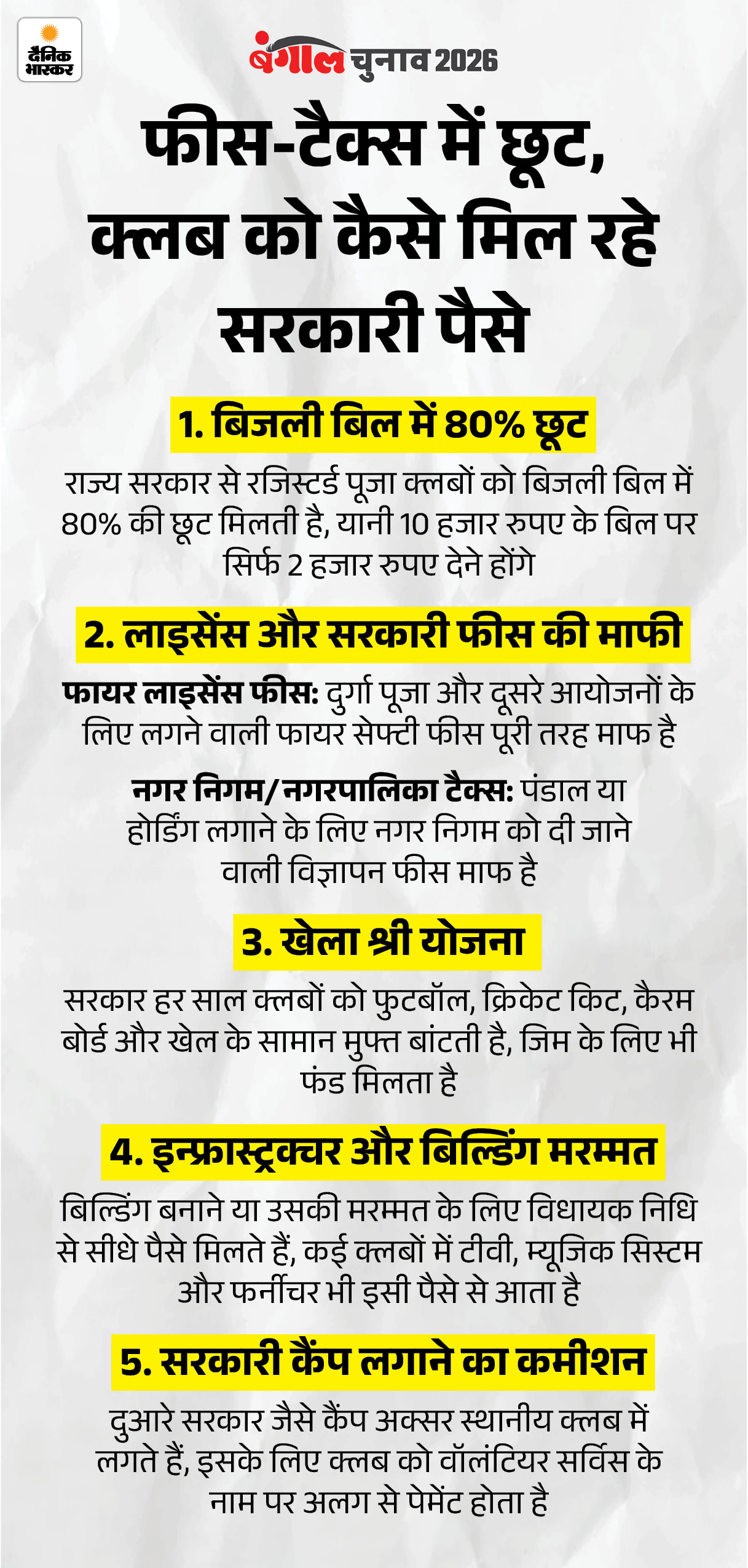 बंगाल में 23 अप्रैल को पहले फेज की वोटिंग में रिकॉर्ड 93% वोटिंग हुई। 29 अप्रैल को दूसरे फेज की वोटिंग होगी। हर मोहल्ले में बने क्लब TMC के प्रचार में जुटे हैं। बंगाल की राजनीति समझने के लिए इन्हें समझना जरूरी है। ममता सरकार ने 2025 में हर रजिस्टर्ड क्लब को 1.1 लाख रुपए दिए थे। 2018 में ये रकम सिर्फ 10 हजार थी, यानी 8 साल में सरकारी मदद 10 गुना बढ़ी है।